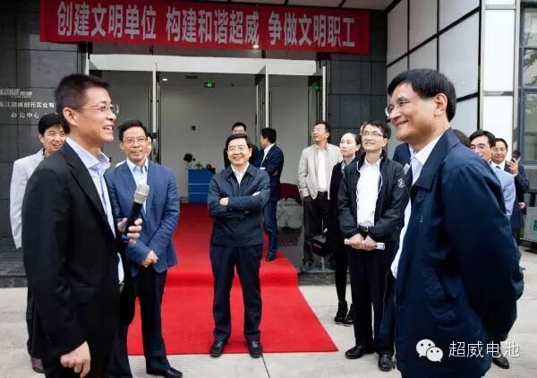 在考察中,熊建平副省长一行还关切地询问了超威集团企业经营情况、产业布局和相关产品的研发生产情况,当得知超威去年销售额超500亿、已是全市、全县纳税大户时,他非常高兴。他表示,看了超威研究院的规模和听了杨新新总裁的介绍,这让我们对全省经济发展更有信心了,超威在科技创新方面走在同行前列,祝愿超威集团做的越来越大。同时,他希望超威继续加大研发力度,加快科技创新,为铅蓄电池产业的转型升级作出新的贡献。