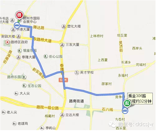 路线二:台州客运东站——路桥国际会展中心(公交)