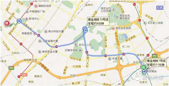 在南京禄口国际机场乘坐地铁S1号线,7站后到南京南站下车,乘坐地铁1号线,4站后在安德门站下车,乘坐地铁10号线到元通站(4号口出)下车,步行1.2公里到达。全程需2小时。