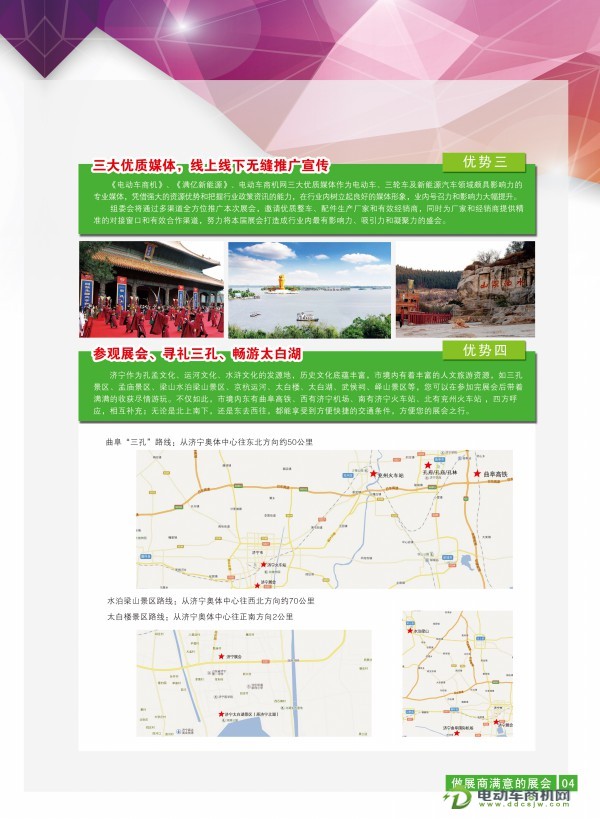 为了更好的响应国家新能源汽车政策,服务低速四轮车及电动车厂家和经销商,2015中国(济宁)新能源汽车及零部件展览会将于8月18日——20日在济宁奥体中心举办,《电动车商机》、《满亿新能源》、电动车商机网联合数十家媒体对展会进行线上线下无缝推广宣传,并邀请优质整车、配件生产厂家和有效经销商,为厂家和经销商提供精准的对接窗口和有效合作渠道,努力将本届展会打造成行业内有影响力、吸引力和凝聚力的盛会。特此诚邀整车、配件生产厂家和经销商共赴盛会,携手推进电动车行业健康发展。