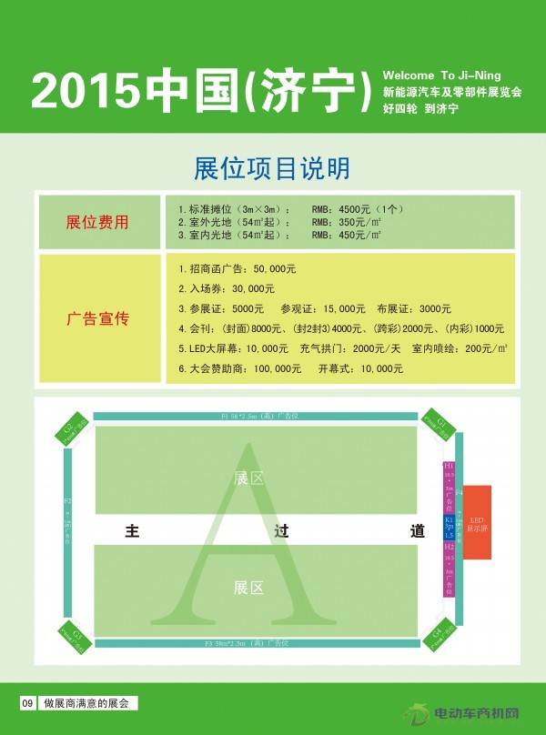 为了更好的响应国家新能源汽车政策,服务低速四轮车及电动车厂家和经销商,2015中国(济宁)新能源汽车及零部件展览会将于8月18日——20日在济宁奥体中心举办,《电动车商机》、《满亿新能源》、电动车商机网联合数十家媒体对展会进行线上线下无缝推广宣传,并邀请优质整车、配件生产厂家和有效经销商,为厂家和经销商提供精准的对接窗口和有效合作渠道,努力将本届展会打造成行业内有影响力、吸引力和凝聚力的盛会。特此诚邀整车、配件生产厂家和经销商共赴盛会,携手推进电动车行业健康发展。